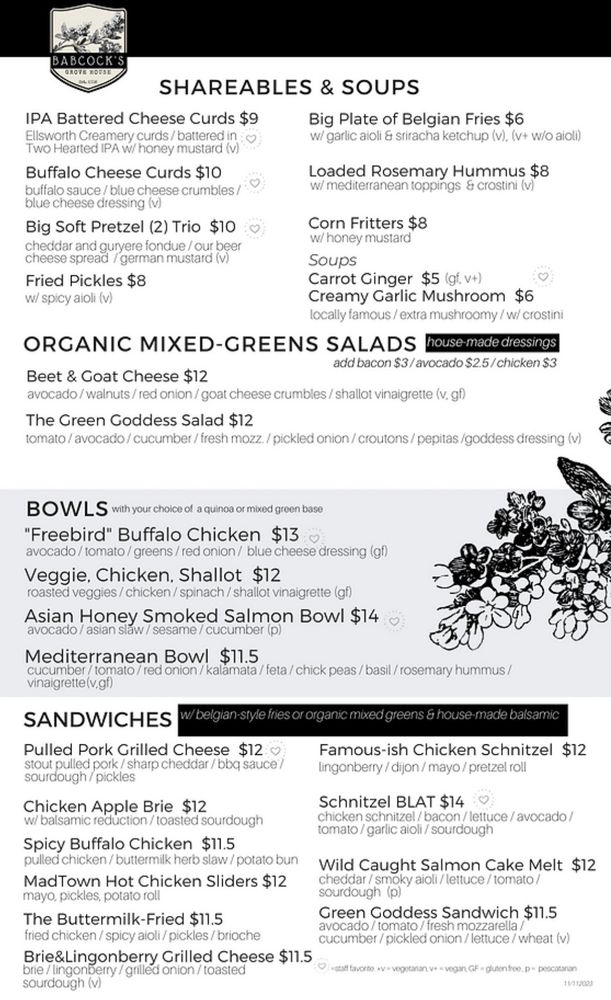 Welcome to Babcock's Grove House, a charming American eatery nestled in the heart of Lombard, IL. This cozy spot offers an inviting blend of casual dining with a touch of sophistication, perfect for families and groups alike.
